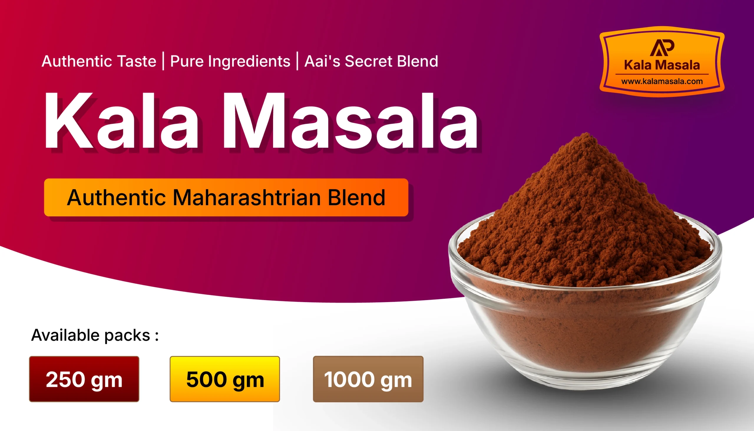 Kala Masala is a traditional Maharashtrian spice blend made by roasting and grinding aromatic spices. Our special homemade recipe enhances the flavor of Chicken, Mutton, and soon your favorite Veg Bhajis too.